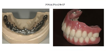 プラスチックの部分を金属に置き換えた入れ歯です。金属にすることで厚みを最小限に抑えることができるため、保険適用の入れ歯に比べて違和感が少なくなります。また、熱い・冷たいなどの温度も伝わりやすいため、食事もおいしく感じることができます。使用する金属によって、特徴があります。 |